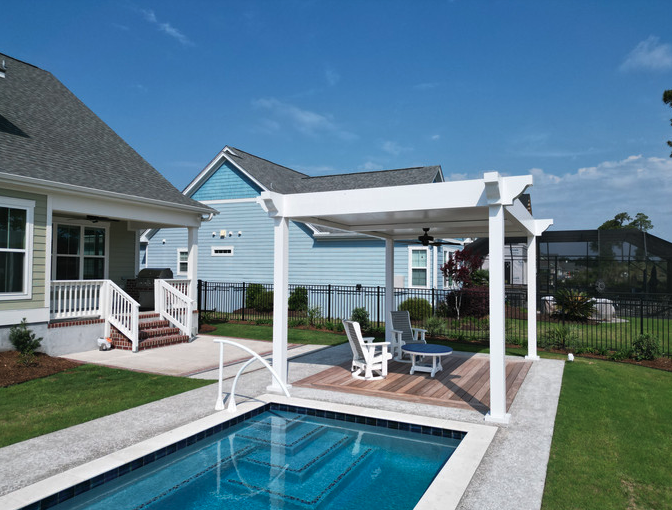 Add elegance, shade, and structure to your outdoor living area with a custom pergola. Our designs complement your landscape and provide the perfect spot for relaxing, dining, or entertaining outdoors.